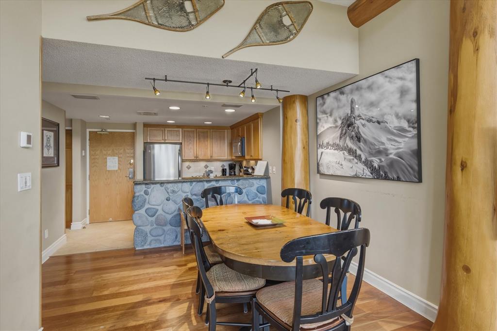 • Remarks: This 2-bedroom, 2-bathroom, top-floor, end unit at the Woodrun Lodge Whistler offers true ski-in/ski-out to the base of Blackcomb Mountain and the Wizard Chairlift in the Upper Village. The property’s prime location, vaulted ceiling, full kitchen, gas fireplace, radiant heat on all hard surfaces, extra storage (bonus 5 storage lockers!), covered parking, breathtaking views, and peeled logs give it a unique feel. The Woodrun Lodge features a pool, hot tub and fitness facility surrounded by pine trees and the peacefulness of the mountains. It is also conveniently located just a short 10-minute walk or a 5-minute free shuttle ride to Whistler Village, which offers a fine selection of dining, shopping and nightly entertainment.